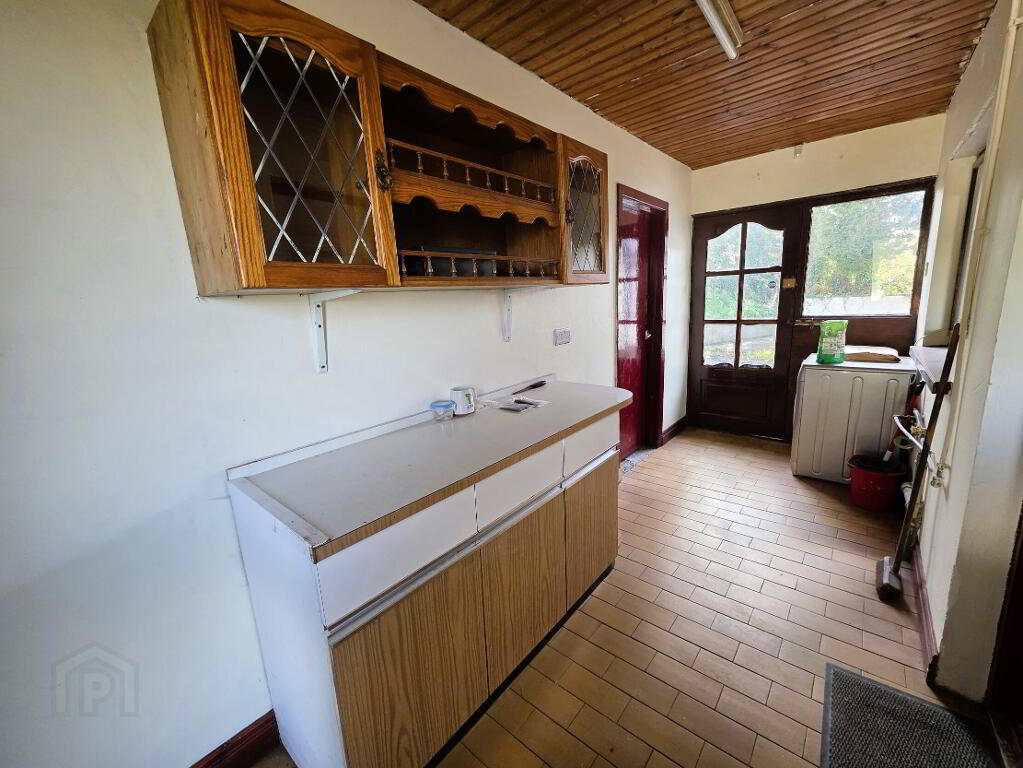 - Range of units, plumbed for automatic washing machine, tiled floor, doors to front and rear, access to garage.