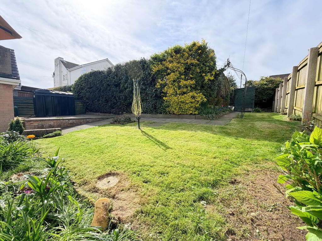 Neat front lawn with pebbled bed and tarmac driveway. Fully enclosed private rear garden with westerly aspect, paved patio and lawn, outside lighting and water tap.