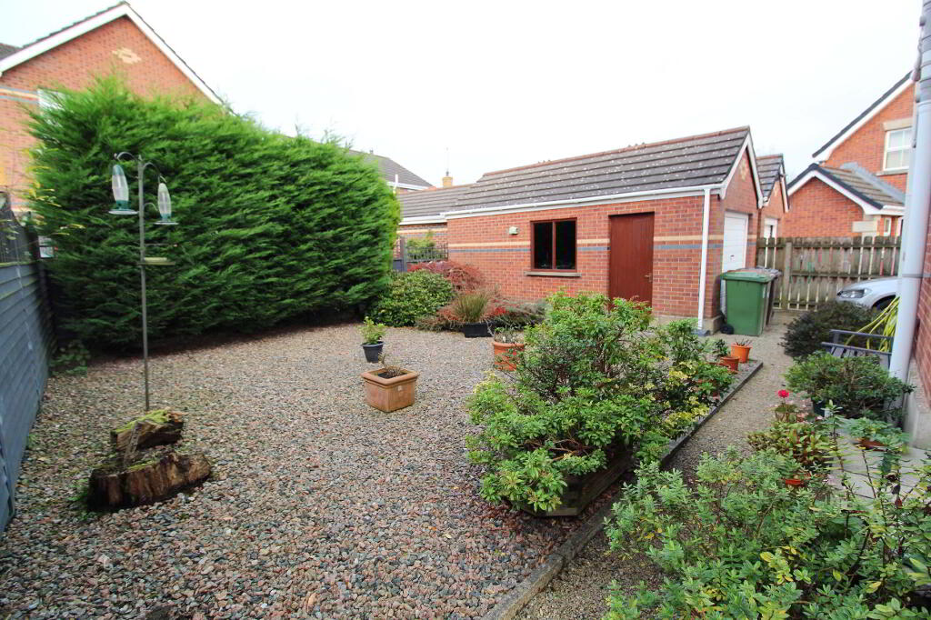 - Front garden laid in lawn, driveway parking. Rear garden laid in stone, outside light and tap, plastic oil tank.